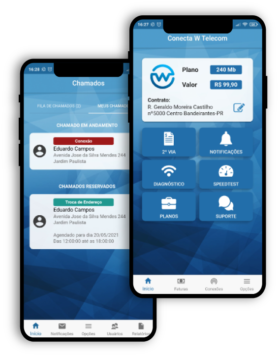 Clique nos menus para acessar as informações dos aplicativos MKA Cliente e MKA Técnico.